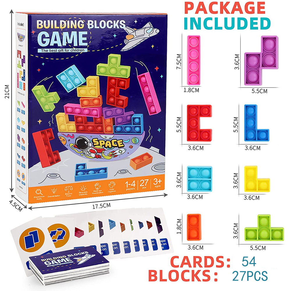 | Description | 27 PCS Mini Pop Puzzle Fidget Toy Bulk Pack Push Sensory Bubble Jigsaw Puzzle Building Block Balance Stacking Set Card Game | Quantity | 96/ |