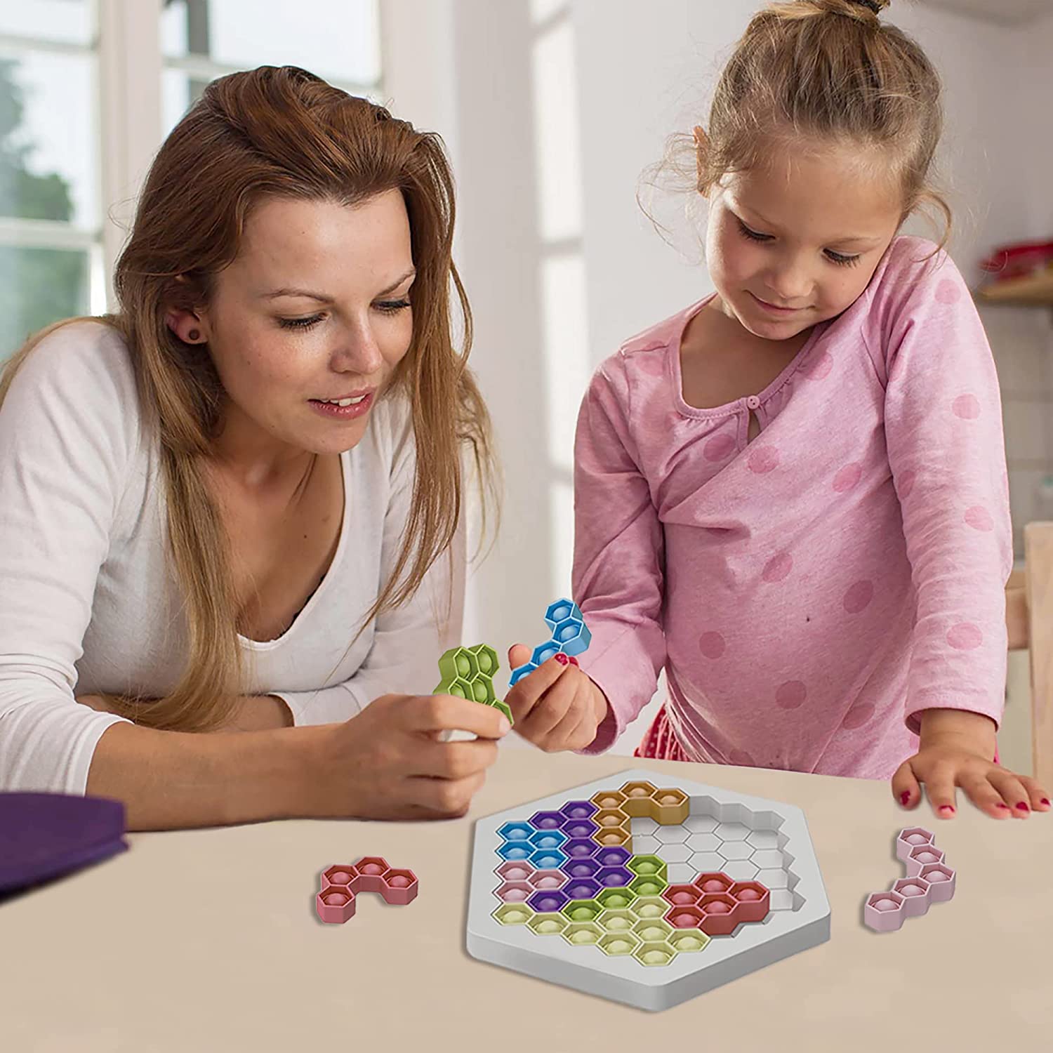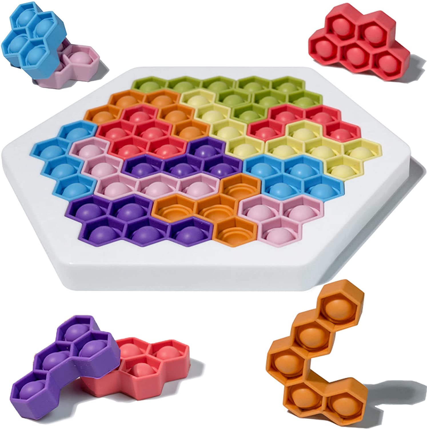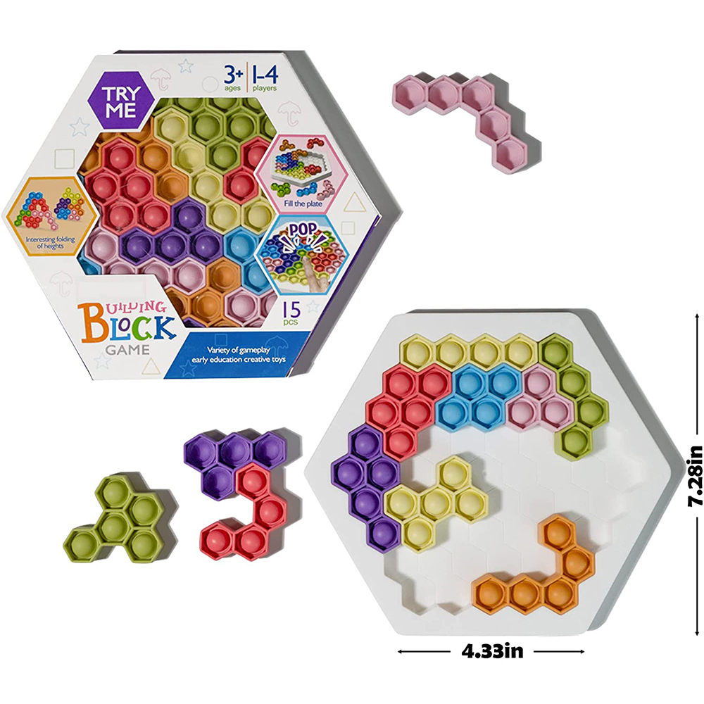 | Description | Puzzle Hexagon Fidget Game Toy Push Bubble Hex Jigsaw Montessori Educational IQ STEM Games Stress Relief Toys for Kids | Quantity | 100/ |